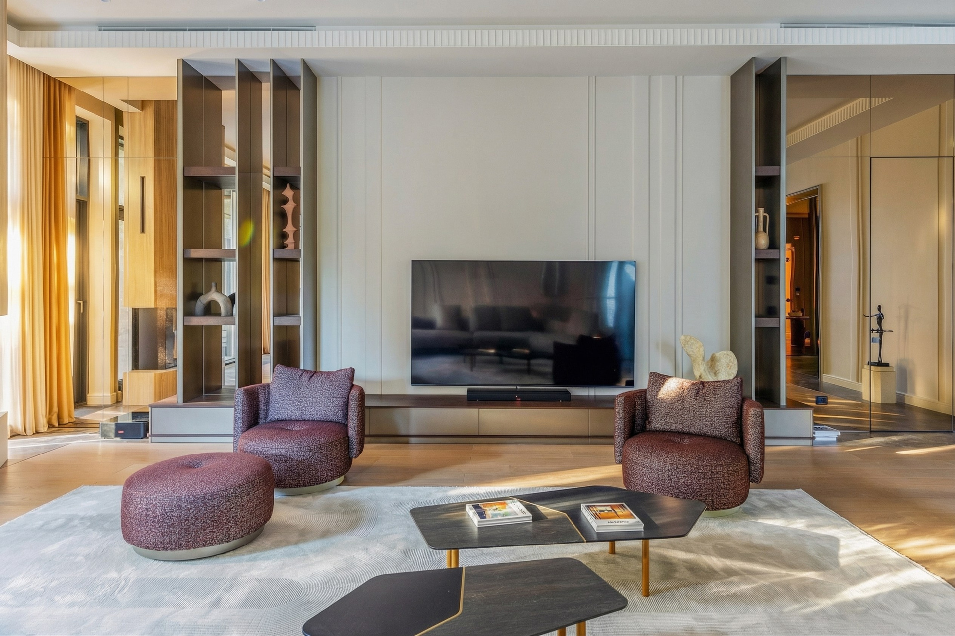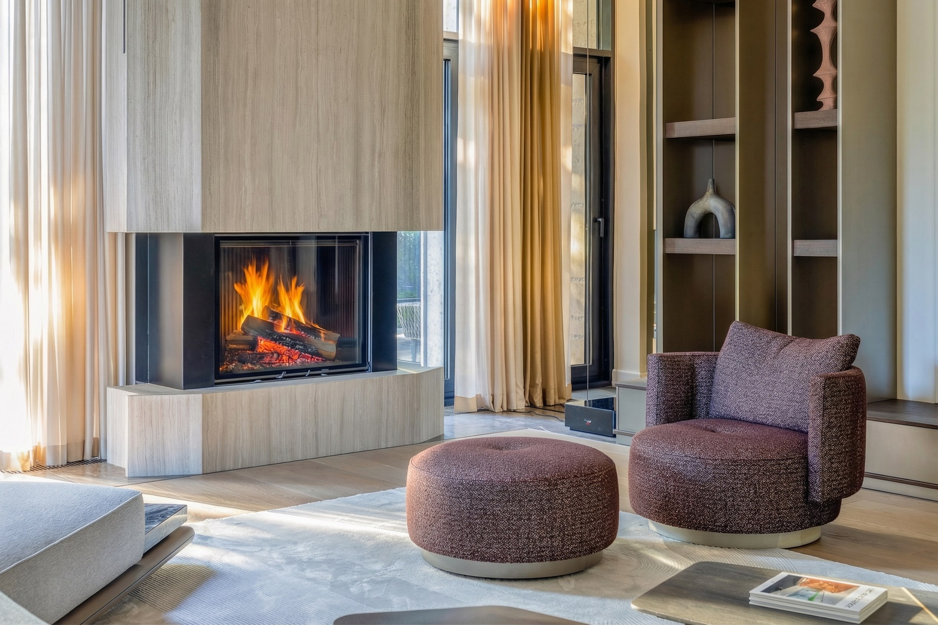 Для частных интерьеров высокого класса особенно важно, чтобы гостевые и семейные комнаты были не просто красивыми, а удобными в реальной жизни. Здесь ставка сделана на пропорции, свет, приватность и долговечность решений — именно это делает пространство по-настоящему качественным.