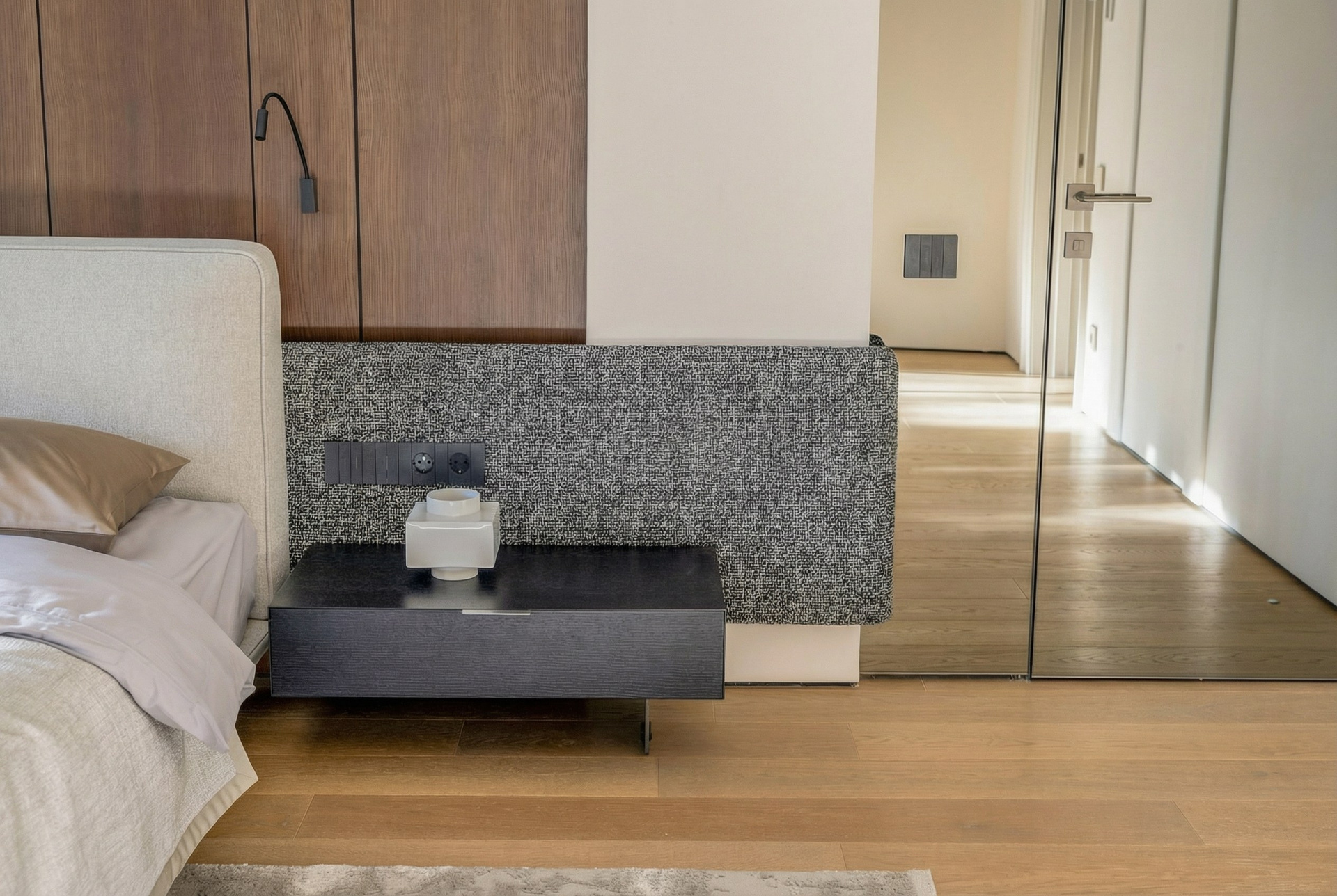 Здесь была особенно важна не только визуальная эстетика, но и логика маршрутов: переходы между спальней, гардеробными и ванными должны были быть удобными, естественными и приватными. В результате пространство получилось не просто красивым, а по-настоящему хорошо организованным для ежедневной жизни.