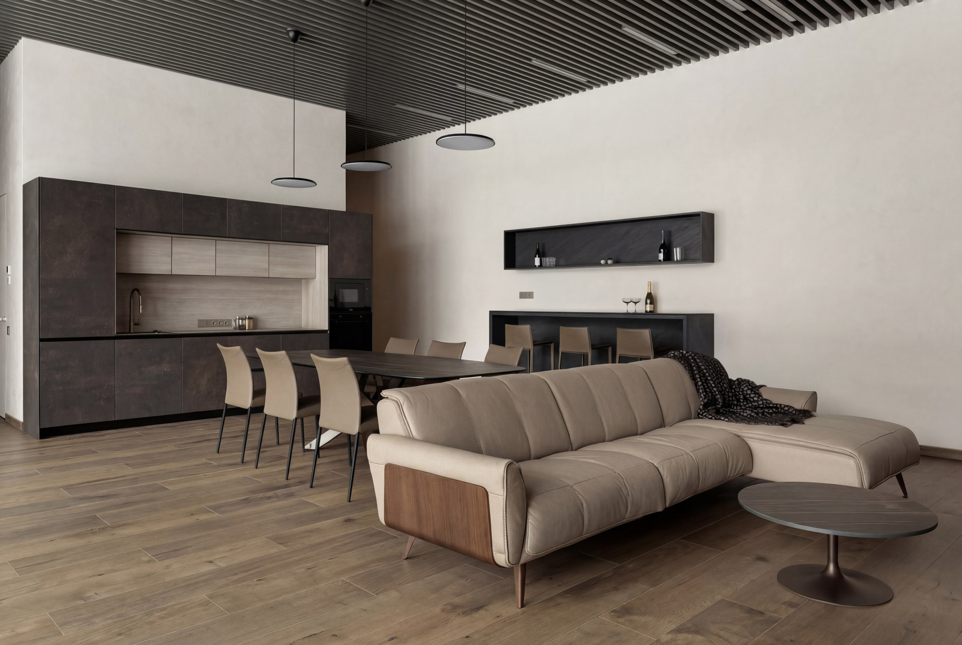 В результате пространство выглядит статусно, но не жёстко; эффектно, но не выставочно; выразительно, но при этом полностью пригодно для реальной жизни.