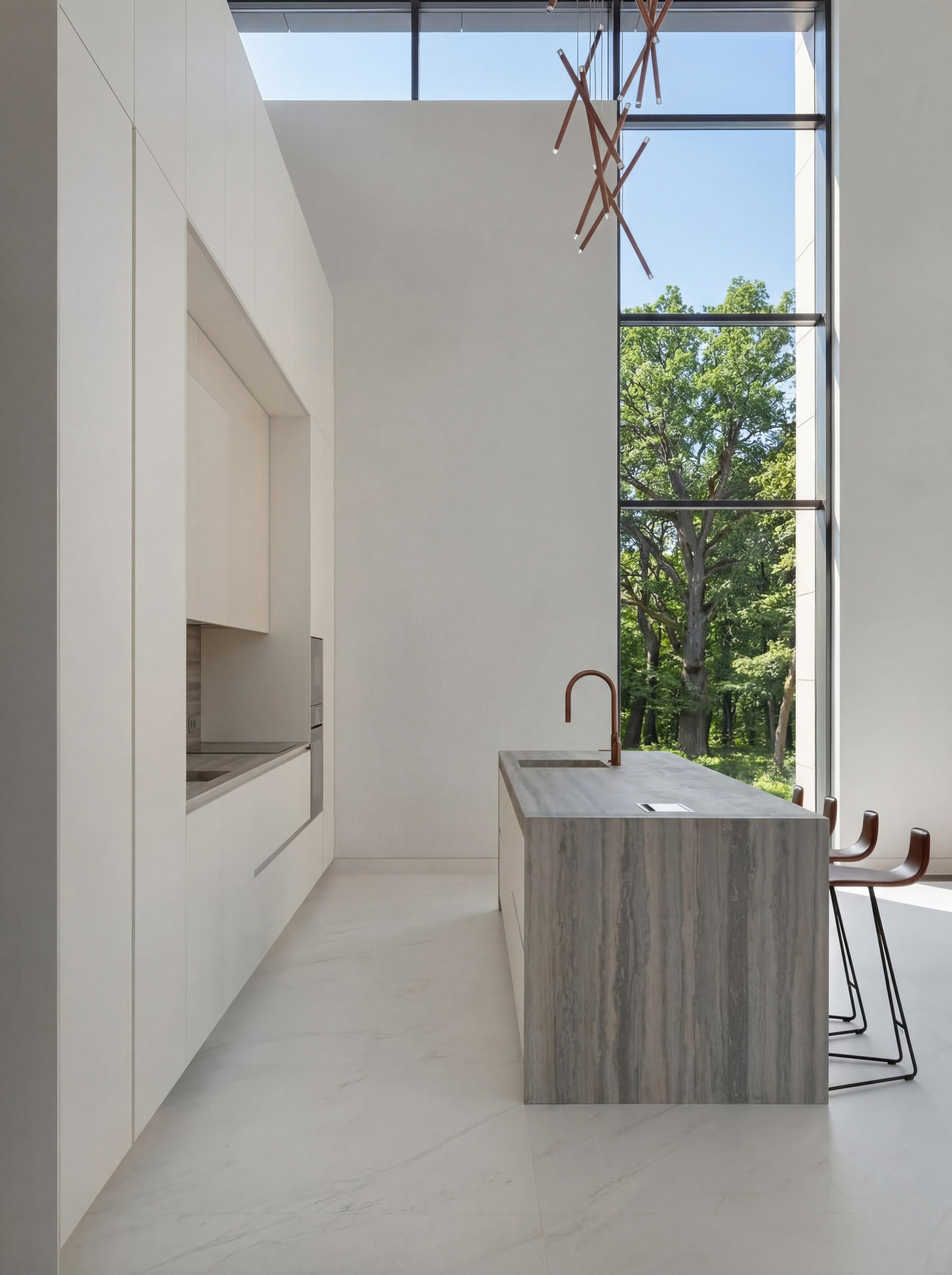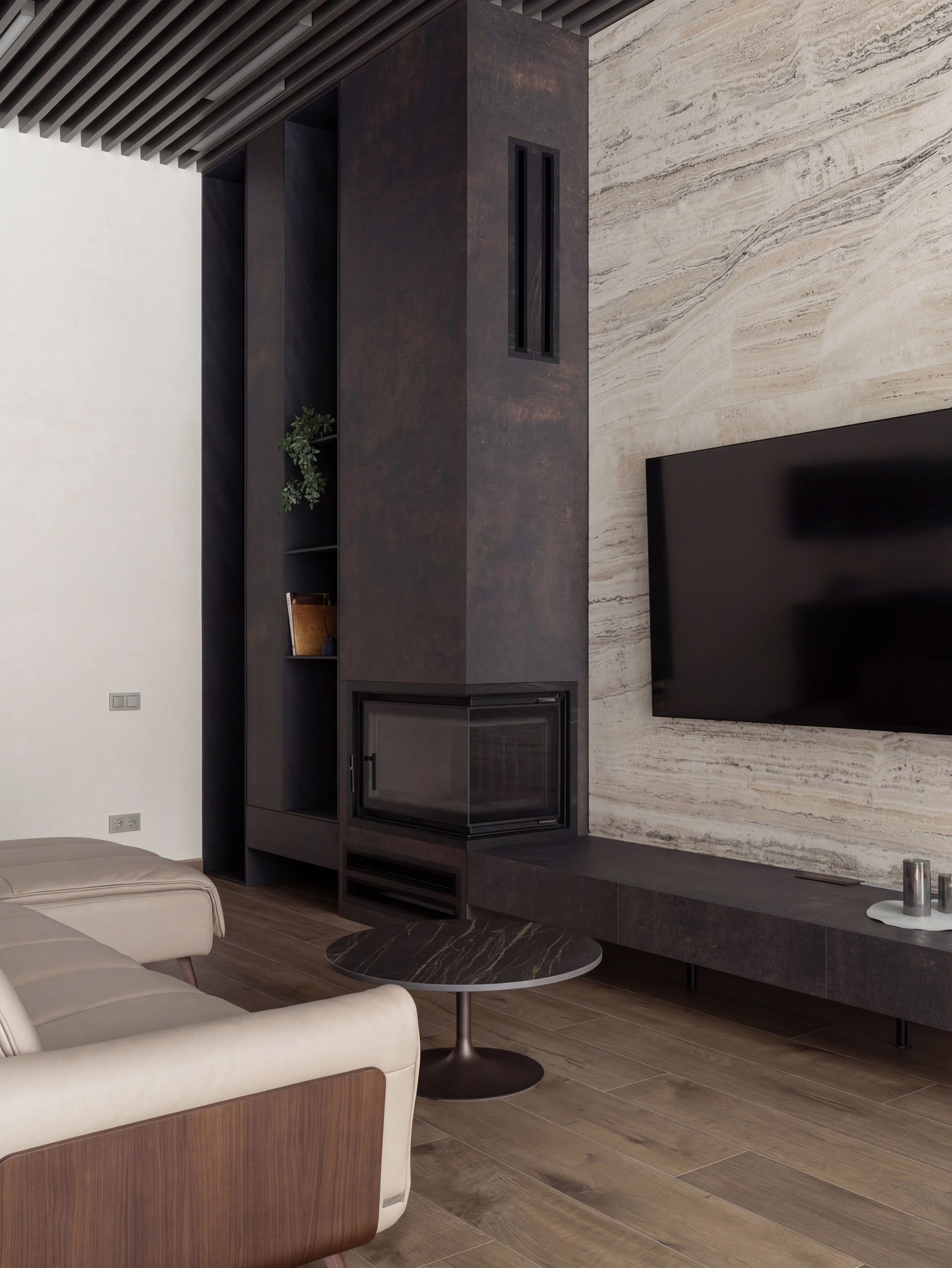 Такой объект требовал не декоративного, а архитектурного подхода — с точной работой над пропорциями, светом, материалами и ритмом восприятия.