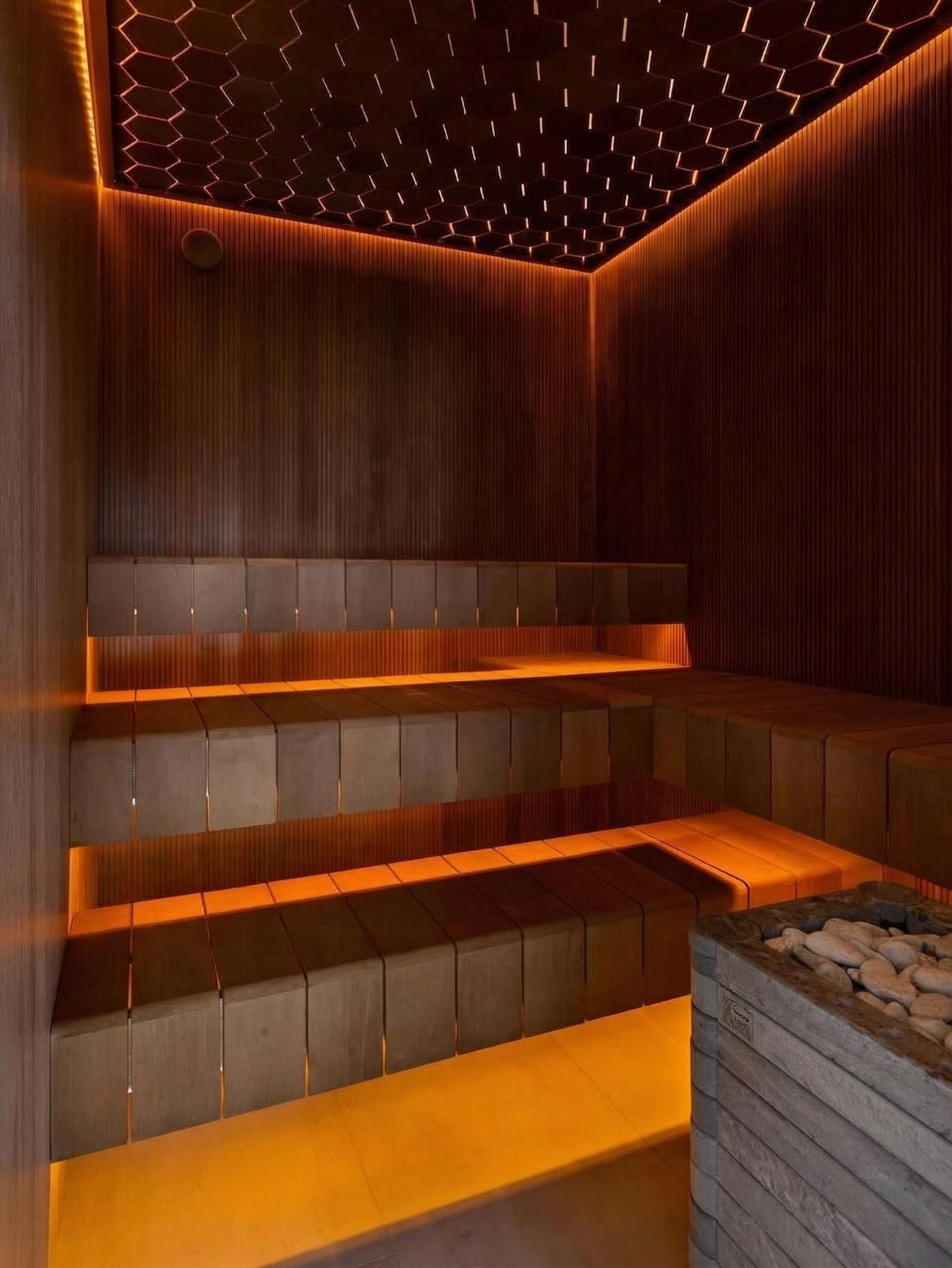 Тёплое дерево, встроенная подсветка и геометрия пространства создают атмосферу приватного восстановления и глубокого визуального покоя. Даже эта зона не выбивается из общей концепции, а усиливает её, подтверждая целостность всей резиденции.