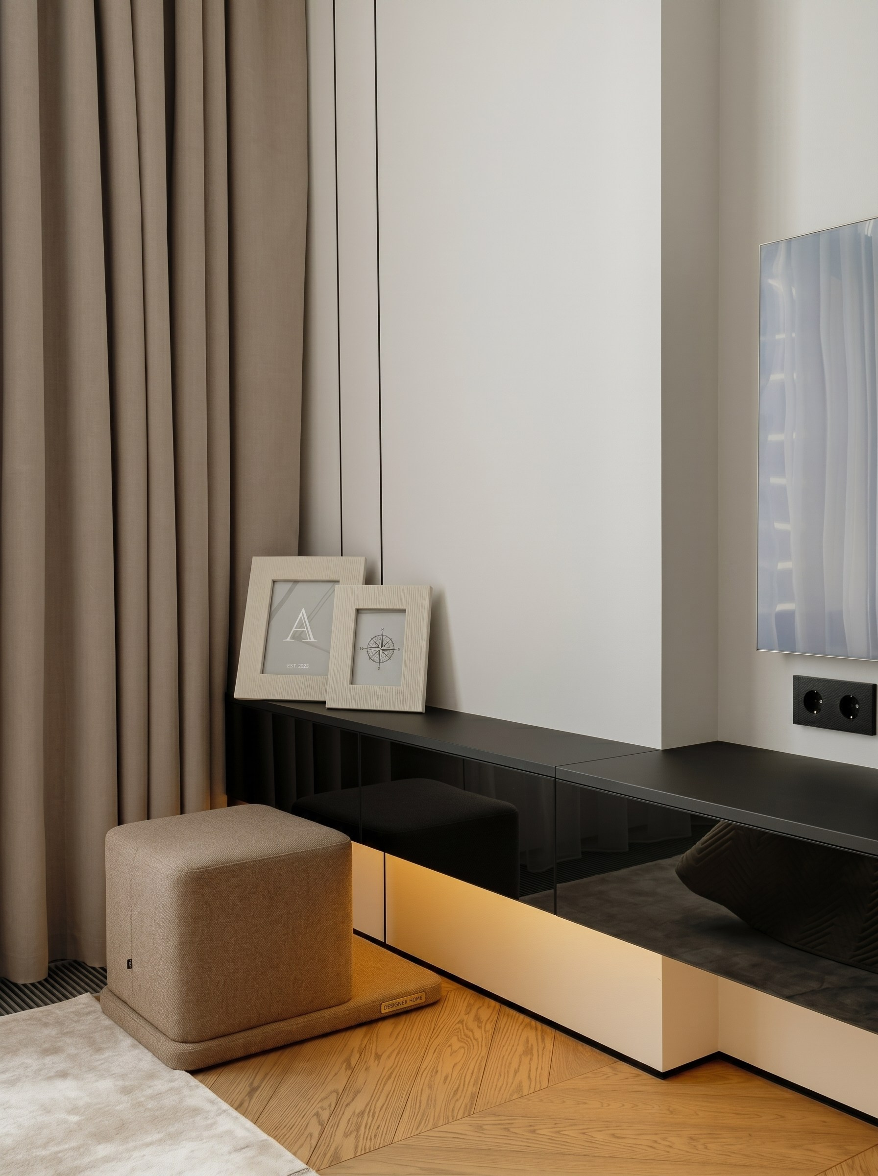 Главная задача заключалась в том, чтобы создать интерьер, который выглядит дорого и собранно, но при этом остаётся удобным для реальной жизни: с продуманными сценариями, встроенным хранением, приватными зонами и ощущением порядка в повседневности.
