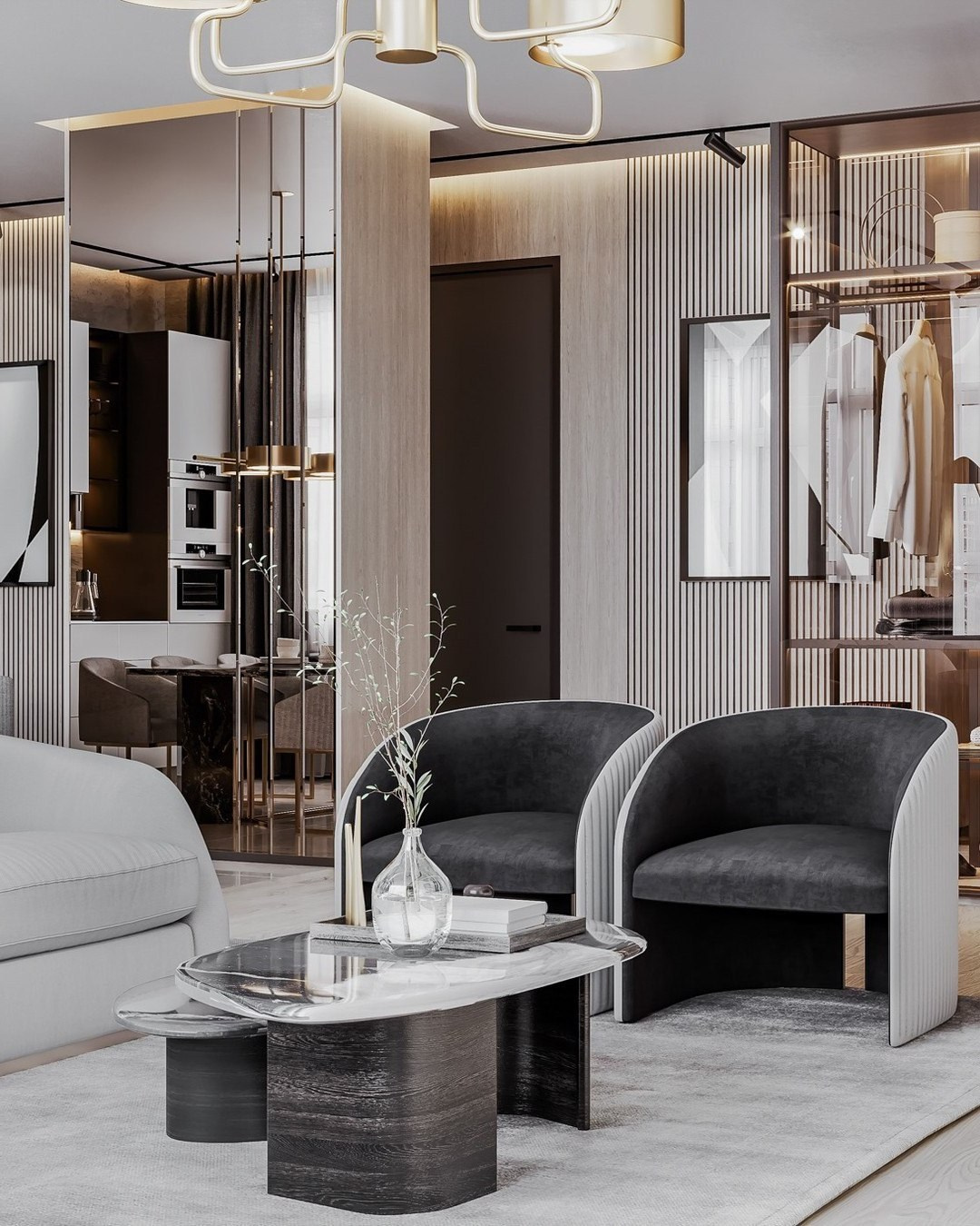 - Студия 34 м², ЖК «Сердце» — визуально увеличено пространство на 30% за счёт грамотного зонирования и зеркальных решений.